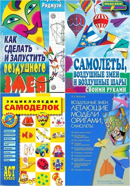 Сборник 24 книги с различными моделями воздушных змеев. Приведено много лучших конструкций воздушных змеев и подробно рассказывается, как изготовить их в домашних условиях. Советы по созданию змея собственной конструкции помогут сделать целую коллекцию змеев, которой вы будете гордиться.