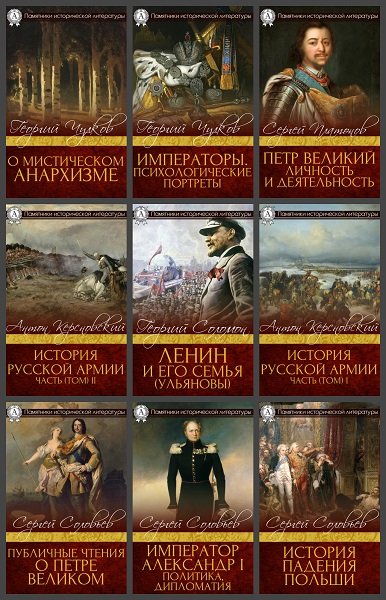«Памятники исторической литературы» – новая серия 42 электронных книг. В эту серию вошли произведения самых различных жанров: исторические романы и повести, научные труды по истории, научно-популярные очерки и эссе, летописи, биографии, мемуары, и даже сочинения русских царей. Объединяет их то, что практически каждая книга стала вехой, событием или неотъемлемой частью самой истории. Книги для тех, кто склонен не переписывать историю, а осмысливать ее, пользуясь первоисточниками без купюр и трактовок.
